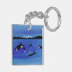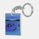 A watercolor painting of a pod of killer whales adorns this customisable keychain!