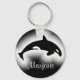 Orca or Killer Whale (Orcinus orca) black and white silhouette with white glow background. You can personalise this keychain with a name or other short text. Orca whales are found in every ocean in the world, and thrive in all water temperatures, from tropical to (ant)arctic. As a spirit animal guide or animal totem, the Orca has various meanings including depth of soul, journeying, hidden realms, song and music, family and community, longevity and protection. In many seafaring cultures, killer whales are considered to be the souls of departed friends and loved ones. Despite their ferocious name, in the wild these sea mammals are not dangerous to humans.