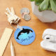Black and white silhouette of a killer whale (Orcinus orca) also known as orca, orca whale or blackfish. This intelligent, curious sea mammal is a member of the oceanic dolphin family. Despite their large size and ferocious sounding name, wild Orca are not considered a threat to humans and are quite tolerant of people in their environment. In Native American culture these animals are often considered to be souls of departed loved ones, watching over the folk of the earthly realm. The spiritual meaning of Orca includes intellect and learning, song and music, communication, strong family ties, travel and protection. You can personalise this blue keychain with your name or short text.