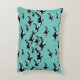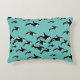 Cool blue throw pillow printed with a pattern of black and white Orca killer whales.