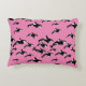 Girly pink throw pillow printed with a pattern of black and white Orca killer whales.