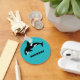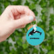 Create a personalised small gift or party favour or anyone who loves whales and other ocean animals. This keychain features an illustration of an orca or killer whale in black and white set against a bright teal blue background and is ready to be personalised with a name or other text in bold black lettering.