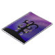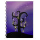 A digitally drawn fantasy landscape of silhouetted trees bearing fruit in stars and moons. From the dark branches hang golden chains of beads ending in a variety of glowing star shapes, crescent moons and full moons, each attached to the branch by a sparkling starburst. The background is a swirling twilight sky in blue and pink studded with tiny sparkles of light, with a spiralling trail of glittering stars circling the trees.