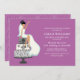 Fun and chic invitations feature a beautiful illustration of a happy bride sitting on top of a wedding cake. Perfect design for bridal showers, bachelorette parties, etc