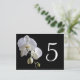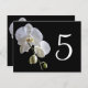 Customise these elegant Orchid on Black Table Numbers and create a different card for each table at your marriage reception, bridal shower or party. These classy custom flowery table number cards feature a floral photograph of white phalaenopsis orchid flower blossoms on the stem with a black background.