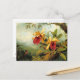 Beautiful vintage artwork by Martin Johnson Heade featuring two gold and orange orchids and a little hummingbird. Beautiful postcard for any occasion.