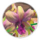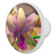 The orchids are blooming again in the garden, in the original photograph by ZoeSPEAK on this Ceramic Knob for drawers and doors. The flowers, emerging from a curving green stem, have purple centres which blend into yellow at the tips of the petals. The natural wood background sets off the sculptural shapes and colours.