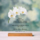 Modern memorial funeral acrylic sign (with or without wood block holder) features beautiful white orchids and directions to guests on signing the guest book. MATCHING items in our collection.