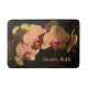 Photographic botanical bath mat designed by Nature! This dramatic floral bath mat features coral pink and yellow phalaenopsis orchids, moth orchids, cast in shadow and light against a black background. It is a naturally beautiful and dramatic shower curtain for a spa like bathroom decor. Personalise text with your own expression. Beautiful coordinating shower curtains are also available.