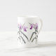 Slender stems of lavender and purple Arundina orchids antique engraving bone china mug.