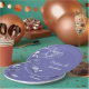 Elegant wedding paper plates featuring a beautiful and delicate white orchids line drawing design on one side, over a contemporary periwinkle purple background. Easily edit the template fields to add the bride and groom names in a classy white script.