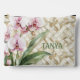 This toiletry bag design features tropical orchids with a woven pattern background. You can personalise with a name.