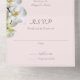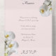 White orchids on pale pink invitations that come with detachable reply cards. Celebrate her milestone birthday event with easy to use folded cards that have places for addresses on the front. The detachable RSVP card is helpful in gathering a guest count for any event. Include postage and it is ready to return by guests. Pretty white orchid flowers decorate both sides of this pretty light rose pink paper. Text templates are an elegant calligraphy font style.