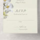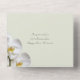 Birthday party invitation for a woman’s milestone age. Orchids decorate this all-in-one invitations with a detachable reply card. White orchids make this an elegant party invitation to celebrate someone special. The reply card wording is simply “will attend” and “will not attend” with the wording of your choice. “Happy birthday (name)" under the flap tells guests the theme of the party. Pale yellow inside and pale green on outside, this pretty invitation makes planning a birthday celebration easy. Include addresses for recipient and rsvp on the front, with a place for return address on the flap.