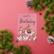Blooming orchids floral bouqet with happy birthday text in customizable Gold,Silver or Rose Gold foil