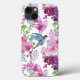 A Bright And Cheerful iPhone 13 Case Patterned In Pink And Purple Orchids With A Centre Hummingbird