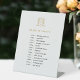 Wedding order of events guest signage timeline white with gold coloured monogram. Heart crown crest entwined with leaves and berries monogram line art, personalise with your own wedding time schedule of events. Ideal to put on entry table. Uniquely designed and hand drawn monogram crown art by Sarah Trett for www.mylittleeden.com on Zazzle.