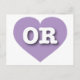 This postcard features a lavender heart containing the bold, white, upper case letters OR, the official abbreviation for Oregon, the beaver state. The reverse side of the postcard is blank, awaiting your handwritten sentiments or personalised text.