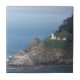 Classic coastal photograph of a white lighthouse with red roof in Oregon with a calm sea.