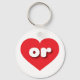 This keychain features a vibrant red heart containing the bold, white, rounded lower case letters or, a playful abbreviation for Oregon, the beaver state.