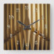 In this square clock specially designed for musicians, the golden organ pipes of Bridlington Priory are set behind clock face white numbers in the Curlz font.