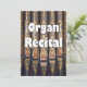 You practice hard, so you need plenty of people to come to your concert to hear the results! Spread the word to as many people as possible with these pre-designed cards. Template space is already there for performer, pieces being played, plus the all-important, where, when, and how much is the entry fee. But these invitations are all customisable, so you must write in your own name and details etc where it has been carefully prepared for you - all easy and far, far quicker than doing it all from the start by yourself! Brightly painted organ pipes in the background over which are written the words Organ Recital in white. The reverse has a faint image of the front with the necessary fields of information waiting for you to fill out.