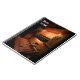 The full organ console showing stop knobs, keyboards, pedalboard, pistons and couplers, taken from the side of the organ in a dramatic light-shade shot. The words 'Organ lessons' go over the top, but can be customised to suit..