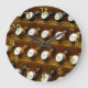 a photo of organ stops, with numbers in gold in the Curlz font, around the clock face.