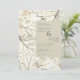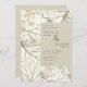 These 5" x 7" wedding invitations feature an abstract leaf design in shades of dusty sage and blush with placeholders, "We invite you to celebrate the wedding of," the bride and groom first and last names, date, time, wedding location name & address, "reception to follow."