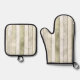 Organic Olive Ivory Faux Wood Stripes Christmas Oven Mitt & Pot Holder Set