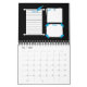 Calendar with cute little designs of a scroll, torn paper with tape, and papers with a paperclip, that you can write on. To-do, notes, and events spaces. Decorated with a blue quill. You can personalise this with your name. Suggestions on the back cover which you can keep or remove and put in place a photo there if you like.