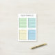 Post-it notepads, personalised with your name, for to do lists and daily organising with four categories: asap, soon, later, whenever. Green, turquoise, yellow, and blue. A practical, clean look.