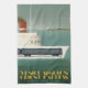 Reproduction of an Orient Express travel poster. Depicts an idea for a train ferry, which was never realised. Wonderful Art Deco Style, in aqua, blue, white, yellow and a red smokestack on the ferry.