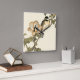 This art print displays sharp, vivid image of an oriental bird perched on a branch. Below it there is an orange flower with a high degree of colour accuracy. This contemporary fine art print of a traditional Oriental-inspired art will add character to any wall in your house.