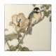 This art print displays sharp, vivid image of an oriental bird perched on a branch. Below it there is an orange flower with a high degree of colour accuracy. This contemporary fine art print of a traditional Oriental-inspired art will add character to any wall in your house.