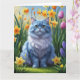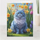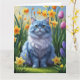 A cheerful Cat sits peacefully on lush green grass, surrounded by colourful spring blooms under a soft blue sky. This digital oil painting captures a serene moment with expressive brushstrokes, warm colours, and a sense of gentle joy.