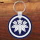 Put your keys on this sturdy key-chain with this famous Japanese Kamakura Minamoto Mon in navy blue. The background is white with a blue border.