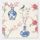 This exquisite design combines classic blue-and-white porcelain vases adorned with floral motifs, intertwined with blooming red peonies and delicate branches of cherry blossoms. The graceful addition of a blue bird perched on the branches adds a serene, artistic touch to this timeless and elegant pattern.