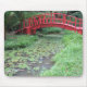 An Oriental style bridge over a small stream with lilly pads. Sorry no frogs!