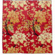 Stunning and elegant, this floral design features golden flowers and leaves with black branches on a radiant red background in an oriental style.
