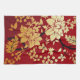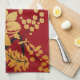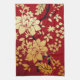 Oriental Golden Flowers on Red Tea Towel