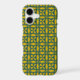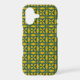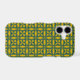 Decorate your Apple iPhone with this Case-Mate Barely There Apple iPhone Case with a beautiful interlocking mustard yellow circle pattern containing stylised leaves. The background is a dark blue green.