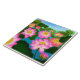 Original fine art painting of pink Lotus flowers by artist Carolyn McFann of Two Purring Cats Studio printed on a quality ceramic tile.
