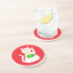 This awesome sandstone coaster features a graphic design image of a lucky oriental white waving cat. The cat has beautiful gold eyes and is wearing a gold medallion on the collar around its neck. The cat has pink ears and whiskers. This cute little kitty is holding a golden token with green jade inlay and a message in golden text that says "Good Luck".