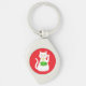 This awesome keychain features a graphic design image of a lucky oriental white waving cat. The cat has beautiful gold eyes and is wearing a gold medallion on the collar around its neck. The cat has pink ears and whiskers. This cute little kitty is holding a golden token with green jade inlay and a message in golden text that says "Good Luck".