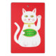 This awesome mini clipboard features a graphic design image of a lucky oriental white waving cat. The cat has beautiful gold eyes and is wearing a gold medallion on the collar around its neck. The cat has pink ears and whiskers. This cute little kitty is holding a golden token with green jade inlay and a message in golden text that says "Good Luck".