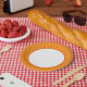 Your party looks bright with these paper plates with this traditional asanoha fabric pattern. The colour is a red on a yellow background.