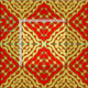 Seamless decorative geometric pattern featuring geometric shapes in red and yellow.