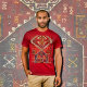 Oriental rug design in red and blue - an antique image is PRINTED on this red T-shirt - illustration from an antique book- it was edited and applied on this item by Alma Wad . Great for ethnic fashion lovers .