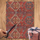 Oriental rug design in dark red tissue paper